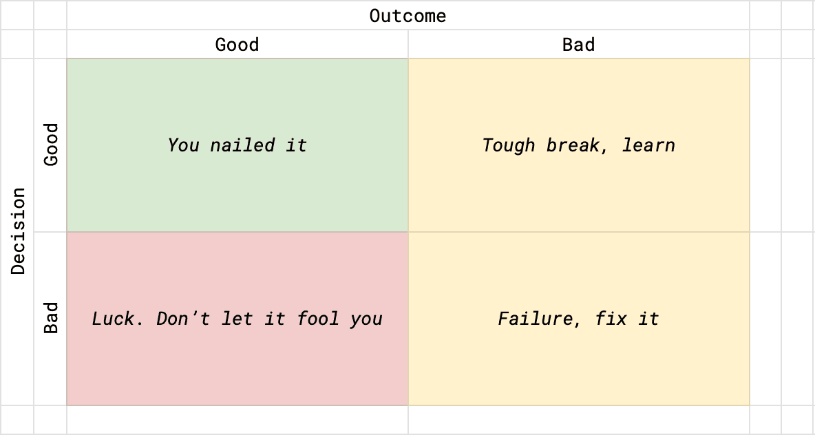 That 2 × 2 tells you if the move was smart, lucky, or a face-plant. It is tidy. Startups are not.