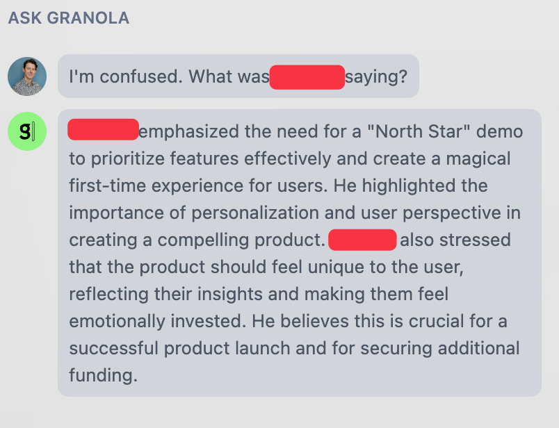 Using Granola to ask questions to the transcript DURING THE MEETING