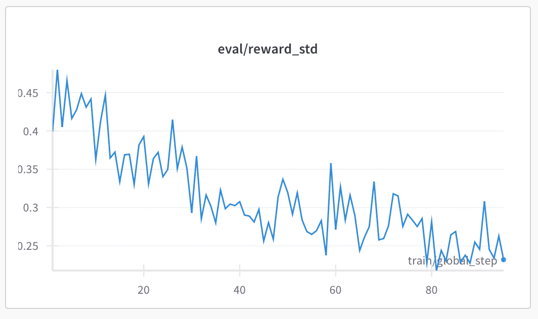 Figure 2: Decreasing standard deviation in rewards, showing the model producing increasingly consistent outputs.