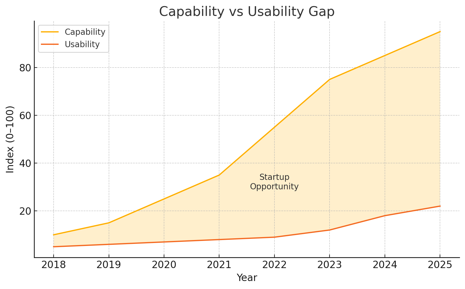 TL;DR: AI power is compounding faster than usability. The resulting complexity gap is the best greenfield for vertical software since the spreadsheet.